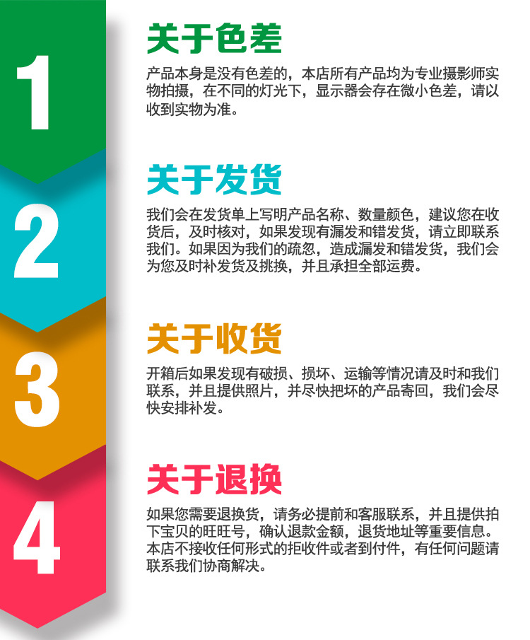 (4)如果从未质量疑问的产品在收货后无法退货,我们将为质量疑问承担退货运输费用,如果需要更换产品,我们将承担运输费用。