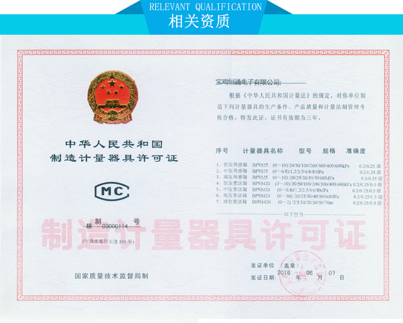 测量范围:0〜6kpa〜60mpa