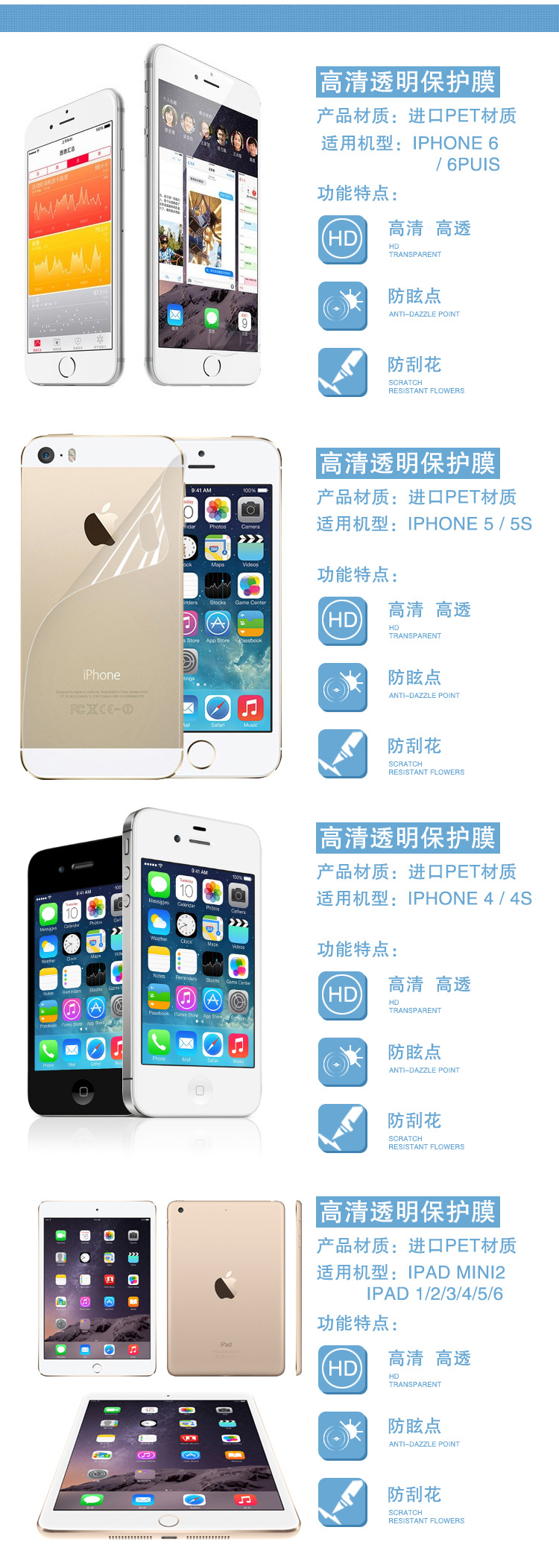 - 贴膜特点高清,防刮,磨砂