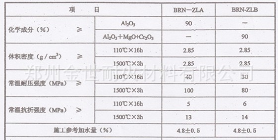耐火温度:1580〜1770℃类型:浇注料等级:i级产地:新密