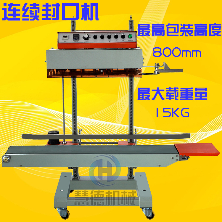 该机器使用垂直密封构造,合适包装较大的物品。当包装的高度时有发生变化时,操作人员可以轻松地晃动手柄以使密封高度达到精确值。用到电子恒温控制和无极调速传输机制,可以密封各种材质的塑料薄膜袋。食品,医药,必需品,化妆品,化工,电气设备等行业,是各个行业不可或缺的密封装置。