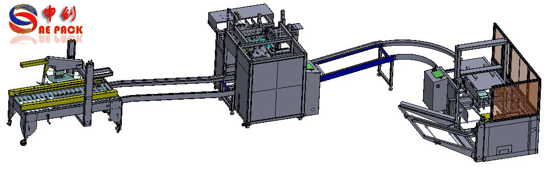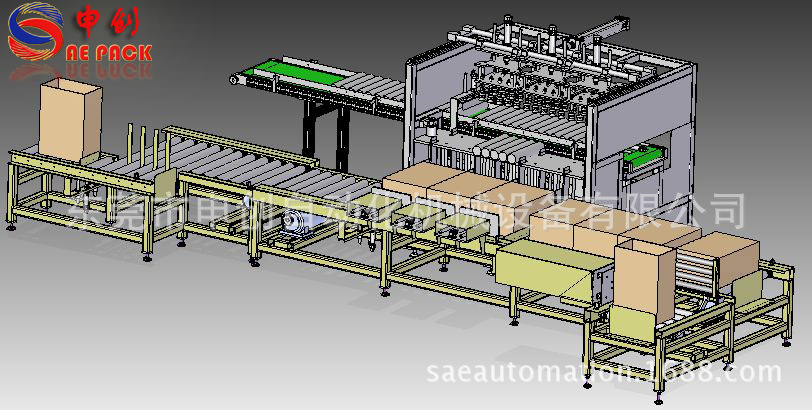 2)本机吸收国际技术,根据箱内产品数目的要求,可以自动整理产品并将其包装到箱内,满箱的产品将自动送至输送辊进入封口机。
