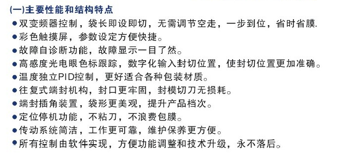 1.采用日本松下或法国施耐德双变频器展开控制,立即设立并切割口袋尺寸,无需调整空运行,一步做到,节约时间和胶卷。
