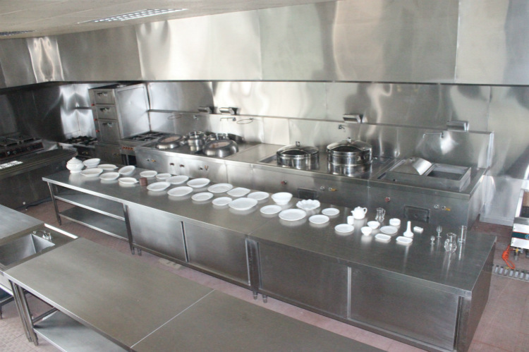 展室的这套标准厨房设备由304不锈钢制成,板的厚度在1.2〜1.5mm之间。