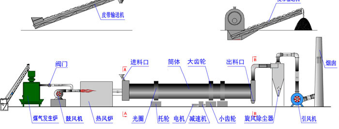 卧式/管式烘干机是一种间接加热接触式干燥机,运用逆流干燥法则达到干燥目的,适用范围广,可用以干燥松散物料的小颗粒,例如化学工业,轻工业,农业,食品工业和饲料工业,例如酒糟,豆渣,谷物,锯末,果渣,沙子,黄砂,河沙,石英砂,轻工业中的药品残留;化学工业中的小颗粒,粉状材质,无机矿物和其他材质;淀粉行业中的玉米胚芽,玉米皮,玉米纤维(玉米渣),蛋白粉等;饲料行业的运输工具(麸皮,玉米屑,豆渣等),鱼,渔业虾和其他废弃物;石油工业中的油菜籽(非种子等),以及有机肥料,鸡粪,牛粪和其他动物粪的发酵和干燥。管式干燥机吸收了国内外同类产品的优势,并兼具经过改进和集成,性能获得了巨大的提高。
