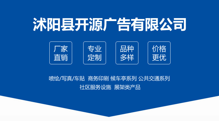 产品详情:沭阳县开源广告有限公司是喷墨打印机,横幅,展示架,相片,精品品牌,灯箱,徽标,LED,LED单元板,电源,彩色印刷,名片,广告杯,手提包,相册,鼠标垫,直角不干胶等。一家专门从事产品生产和加工的公司,有着完整科学的质量管理体系。沭阳县开源广告有限公司的诚信,实力和产品质量取得业界的认可。