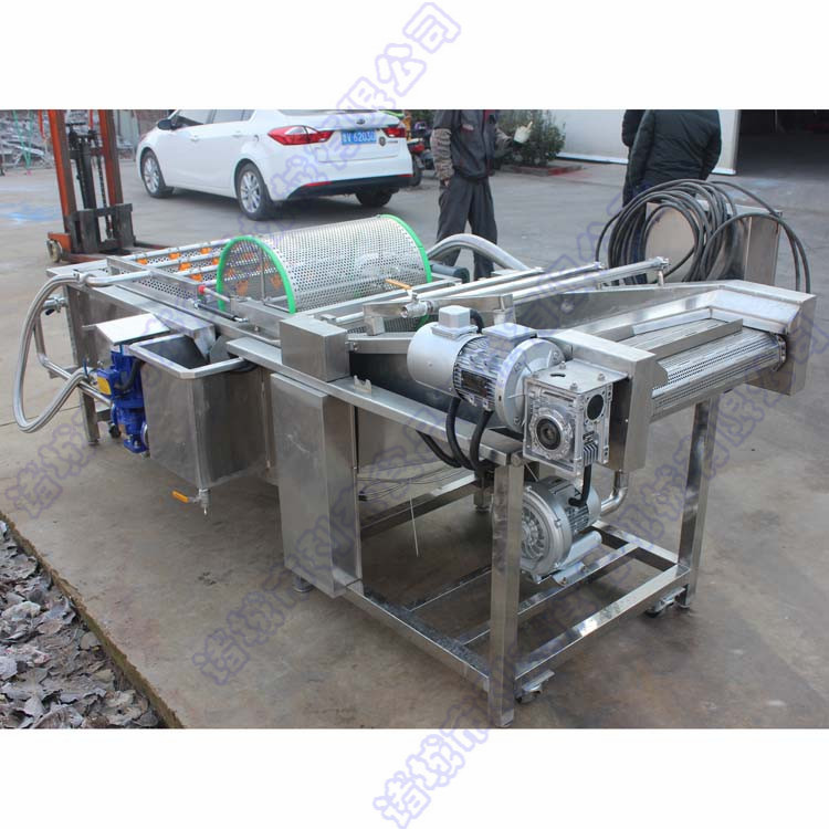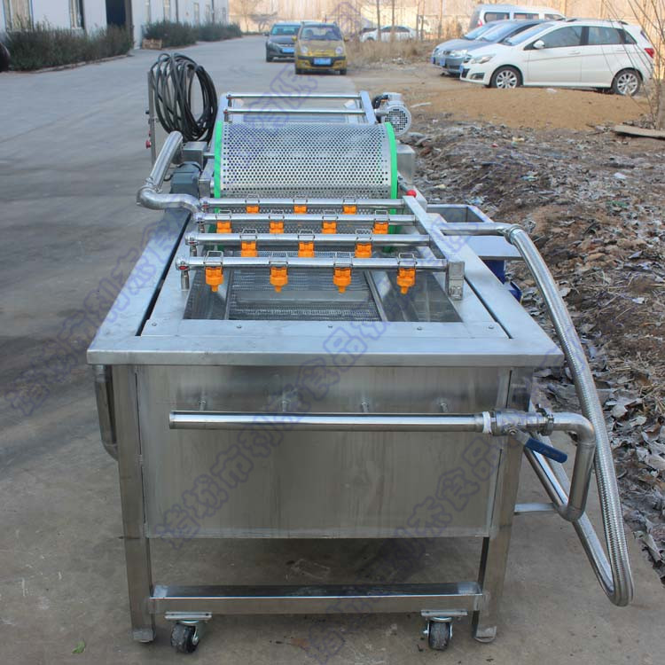 2,设备的输送带电机可以实现变速调节机能。清洗后的蔬菜通过网链输送,自动出入料,根据生产需调节输送带的输送速度;