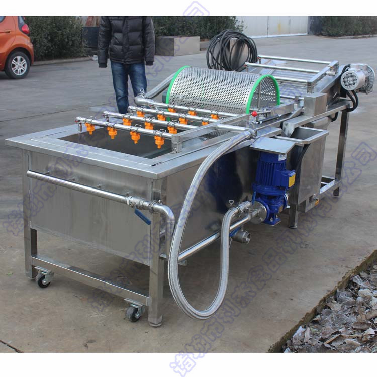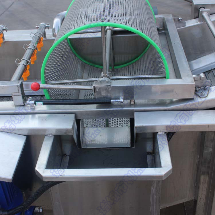 当物料掉入水中时,物料会被水箱中的搅动水搅拌并清洗。材质上的重污垢(如泥土和沙子)被分开并掉入滤网下方的沉淀区域。物料在水的推动下渐渐移至输送网。将皮带从内槽中提出,然后展开第二次喷涂以开展清洗,然后进入后续过程。清洗后的漂洗物料被过滤器阻拦在工作过程中,进水管和洒水管总是供水,以便逐步更换水箱中的污水。
