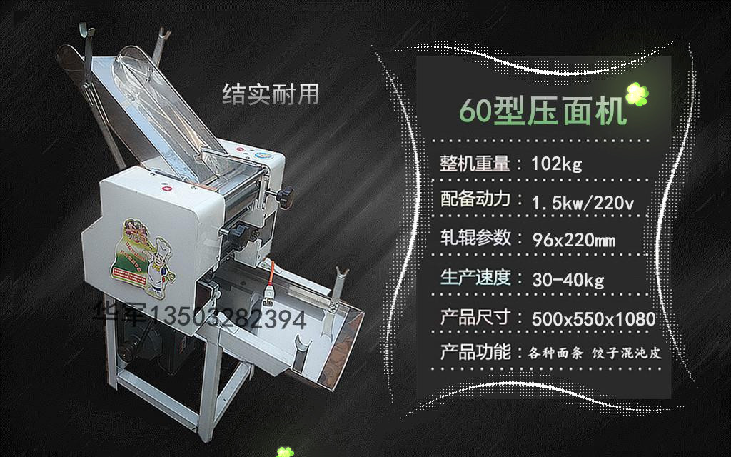 该公司生产一系列单组面条机。电机和机器均由V型三角带驱动,主要传动构件为滚珠深沟球轴承[某些型号采用圆锥轴承,例如MT-60II型]节能结实,保障间距长,省却省力。