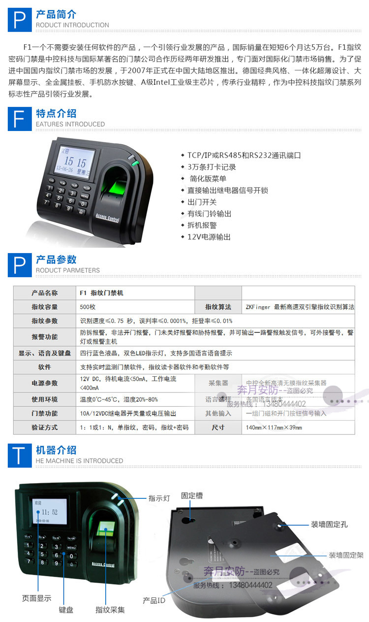 不需要安装任何软件的产品,引领行业发展的产品,短短6个月的国际销量就达到了50,000台。supcontechnology和广为人知的f1指纹密码访问控制系统的开发和发布。国际门禁公司经过两年的研发,专门针对国际门禁市场的销售,为有助于中国国内指纹门禁市场的发展,于中国大陆正式启动德国classic风格,集成超薄设计,大屏幕显示,全金属悬挂板,手机防水按钮,a级Intelindustrial级主芯片,承继了行业精华,作为supcontechnology指纹访问控制系列行业发展的标志性产品,其领先地位。