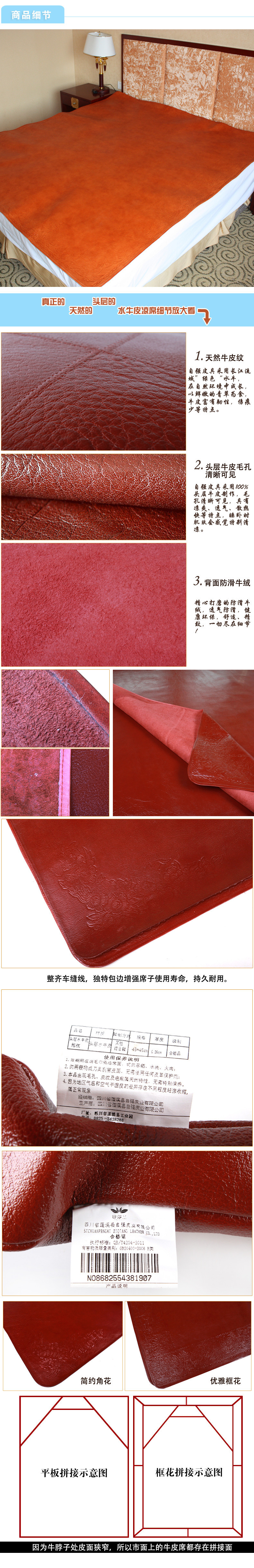莎兰贝尔水皮凉席1.8m牛皮垫头层牛皮软垫牛皮软垫1.8m