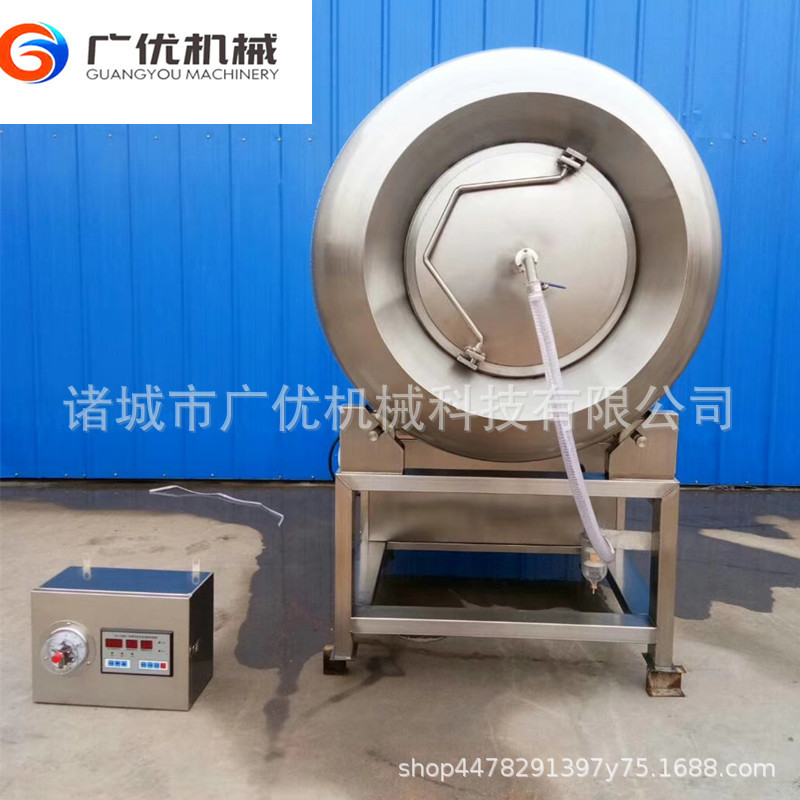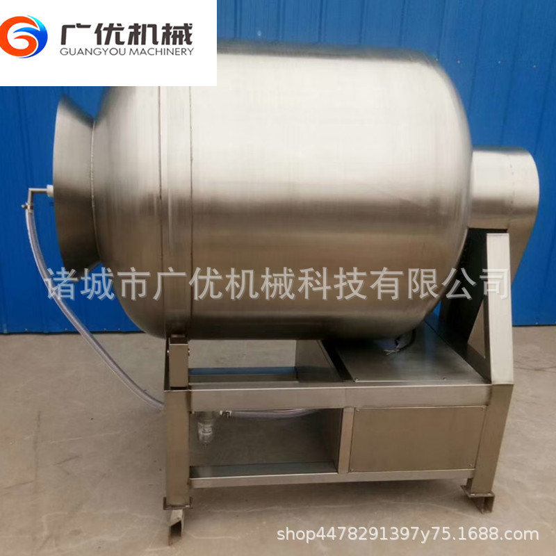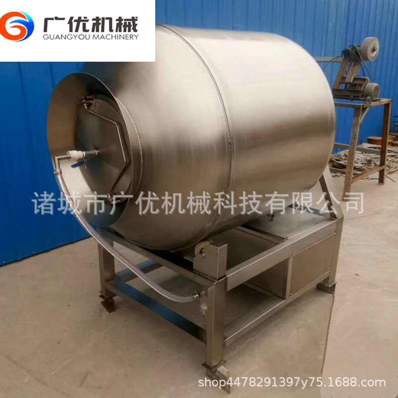 产品详情:真空滚揉机在真空状况下用到物理冲击法则,使肉类产品在滚筒中上下回转,碰撞和殴打,实现按摩和腌渍机能,使肉类均匀吸收腌渍,改善肉的结节专注于产品的弹性,身躯蛋白质可以通过滚动和按摩分解为水溶性蛋白,可以被人体轻而易举吸收。同时,添加剂(淀粉等)可与蛋白质的果肉并入以制成嫩肉。,口感好,生产率高。该机有着肺呼吸机能,可使产品在滚筒内伸缩作往复运动,改善了肉组织的构造,提高了切割功效。