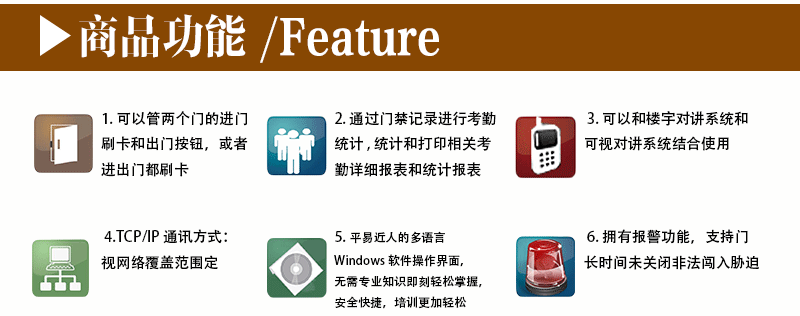 ▼报警功能:具有报警功能,支持门长时间不关闭,非法入侵和胁迫