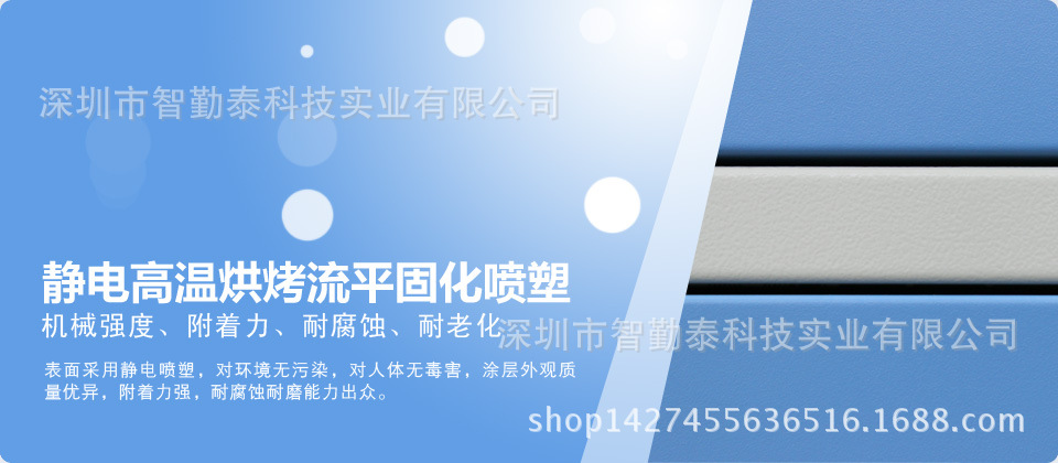 产品材质:柜体由0.8-1mm优质钢板制成,表面具有保护膜,光滑度高,耐腐蚀性强。钢板表面经过酸洗,碱洗,除油,磷化处理,具有很强的防腐,防锈能力。干燥后,在铸件表面上形成致密而结实的薄膜层。高品质的硬件配件和锁具有多种颜色可供选择,也可以定制多种颜色。