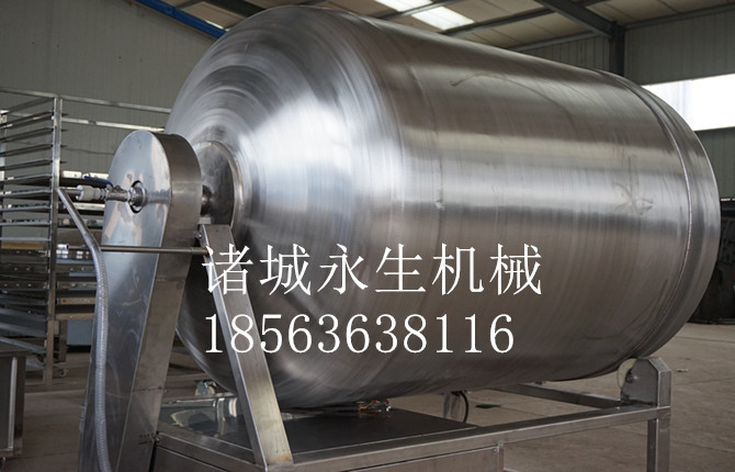 真空滚揉机简介:真空滚揉机在真空状况下使用物理撞击法则,使肉或肉馅在面包卷中上下翻转,碰撞和跳动,从而达到按摩和腌渍的效果。nz@被肉充分吸收,提高了肉的结合力和弹性,改善了产品的味道和横截面效果;可以提高保水率,提高产量;可以改善产品的内部构造。除了腌渍液的特点外,下一代全自动真空滚揉机还兼具电脑控制和变频技术的机能。该更新增加了远程控制操作系统以使机器成为或许更安全,更方便,更节能。