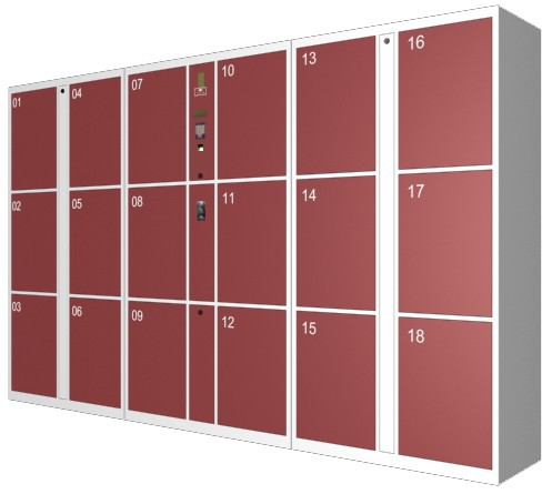 ●箱门号码贴在条形码纸上条形码的顶部,简便客户搜索存储位置;即使条形码图形被人为损坏,管理员依然可以通过管理员的远程控制键盘输入箱号以查找项目。