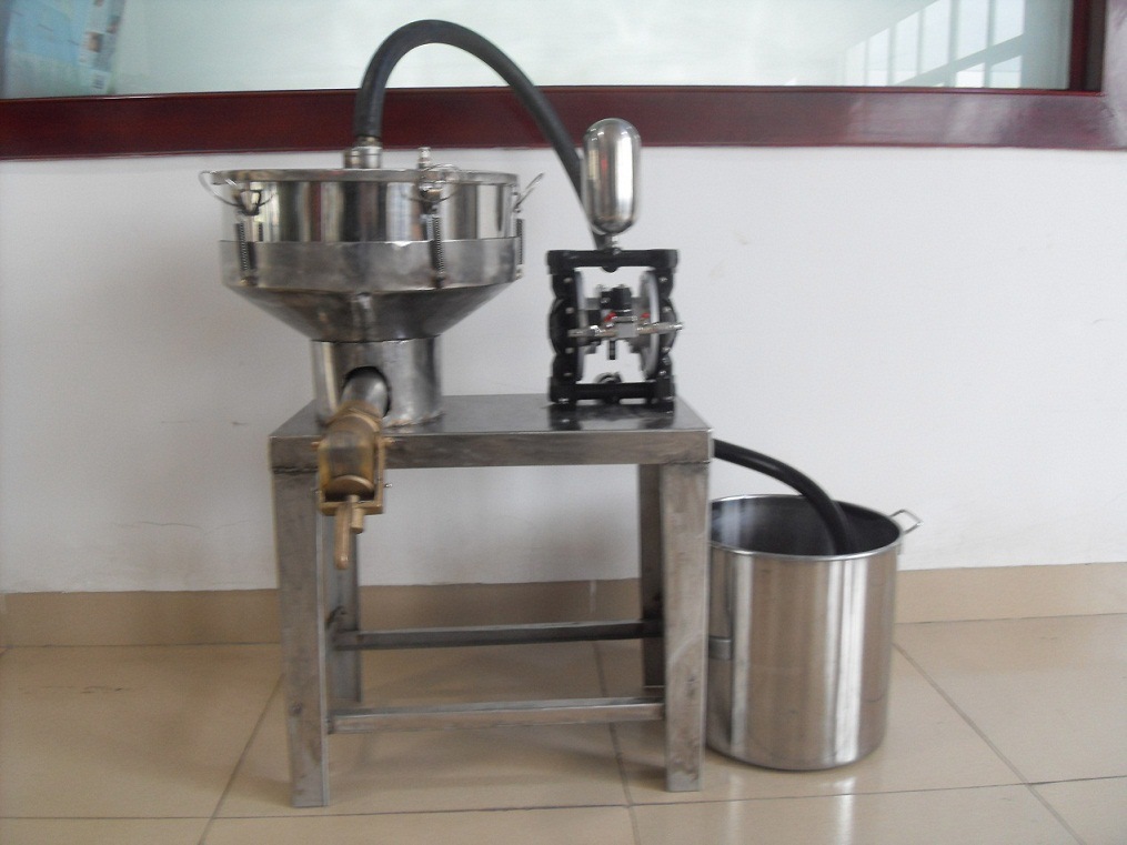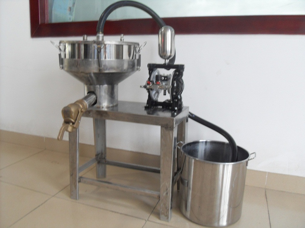 要过滤的材料通过双隔膜泵传输到过滤器。当物料在压力下通过过滤器时,杂质颗粒被过滤器截留,整洁的滤液流出,以得到所需的合格液体。