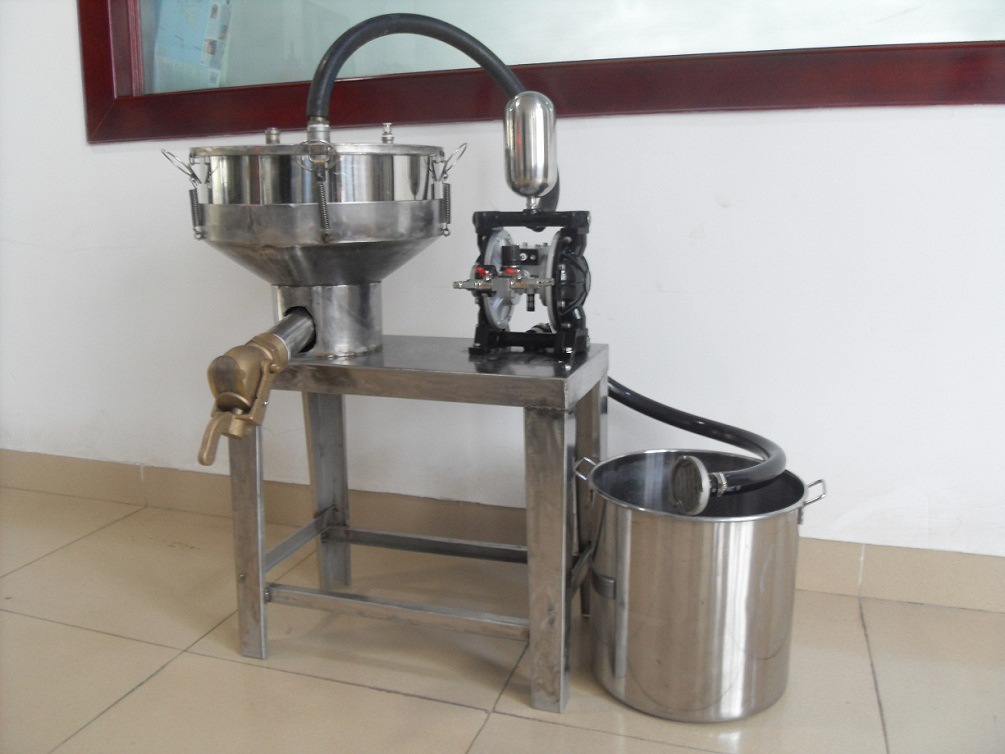 4.首先敞开鸭嘴阀,然后敞开进气门。(双隔膜泵开始工作,将滤液泵入过滤器,然后滤液通过鸭嘴阀流入滤液桶)