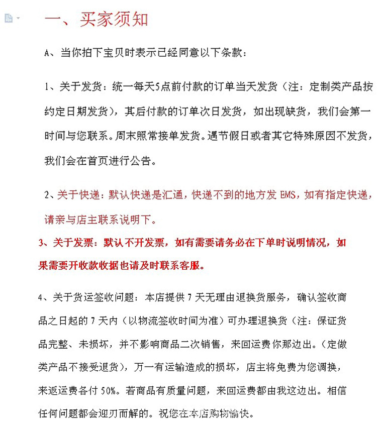 接到婴儿后,请在签收之前先检验货物。如有任何疑点,可以立即与我们联系。如果您在签收后出于任何缘故要求退货(定制产品将不接纳退货),则买家将负责往返运费,给您带来不方便之处,请见谅。