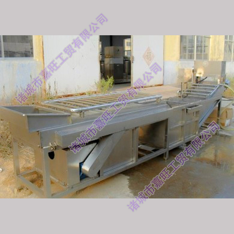 设备装设循环抽水机和滤池,实现清洗水的循环利用,节省用水,并根据具体生产情形更换新水,输送带电机可以实现调速功用。清洗后的蔬菜通过网链输送,自动出入料,并根据生产需调节输送带的输送程度,操作维护便利,工作效率高,是最完美的食品清洗设备。