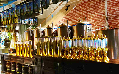 1)自酿啤酒设备由铜或不锈钢制成,华丽典雅;