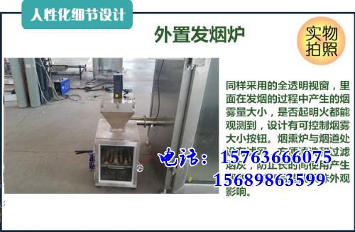 熏蒸炉的处理在主机上开展。上部装有风扇。电机配备高速和低速旋转功用,因此盘管加热器的热能和低压蒸气被迫在炉内周而复始,并均匀控制炉内的烟量和温度。豆腐烟熏炉中的温度传感器,用以自动检测烹调,干燥和吸烟的温度。肉类产品早熟过程中不可或缺的装置之一。