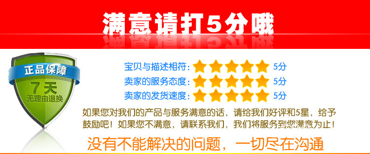 货物抵达后,请在签收前细心确认货物是不是完好无损,否则如果并未质量疑问,将不予退货或换货〜