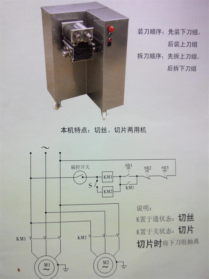 产品详情:本机的特征是刀轴设计为悬臂式,电机,传动构件和悬臂刀轴的一端安装在封闭的壳体中,刀轴的另一端(即外部安装时,切肉丝机兼具这样的构造,在清洁和更换刀组方面优于同类产品。