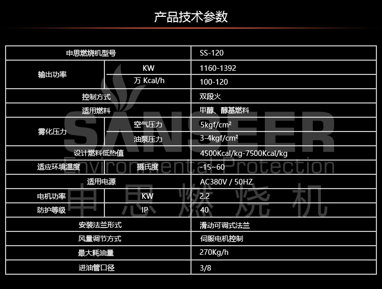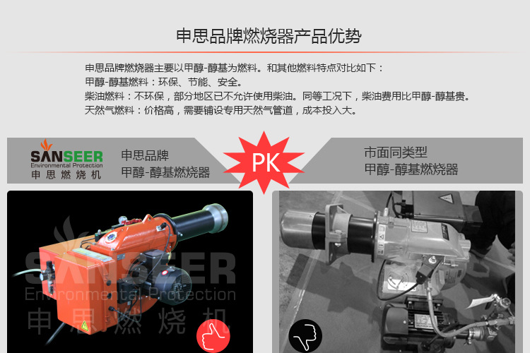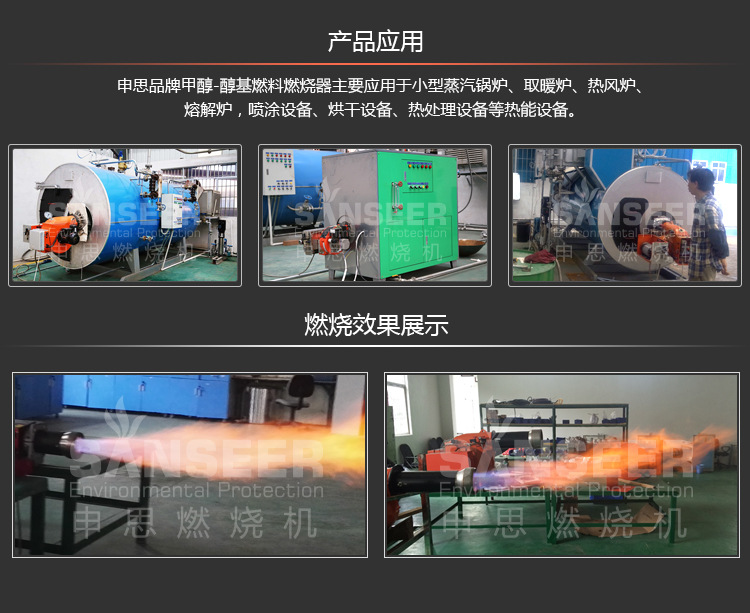 3.根据甲醇和醇基燃料的低粘度属性,使用二流体空气雾化使燃烧全然。