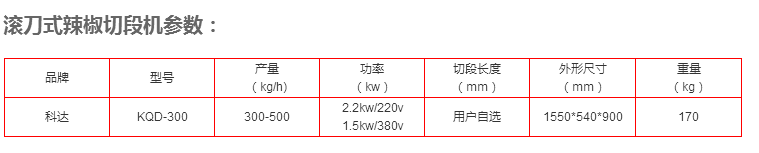 产品详情:KQD-300型滚刀式辣椒切段机,快速辣椒切段机