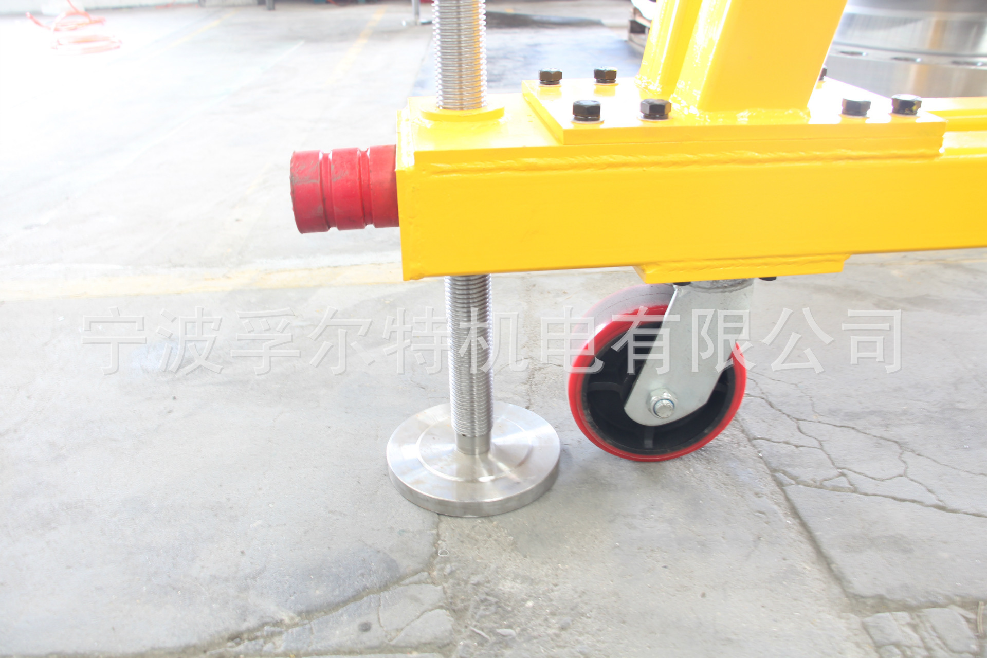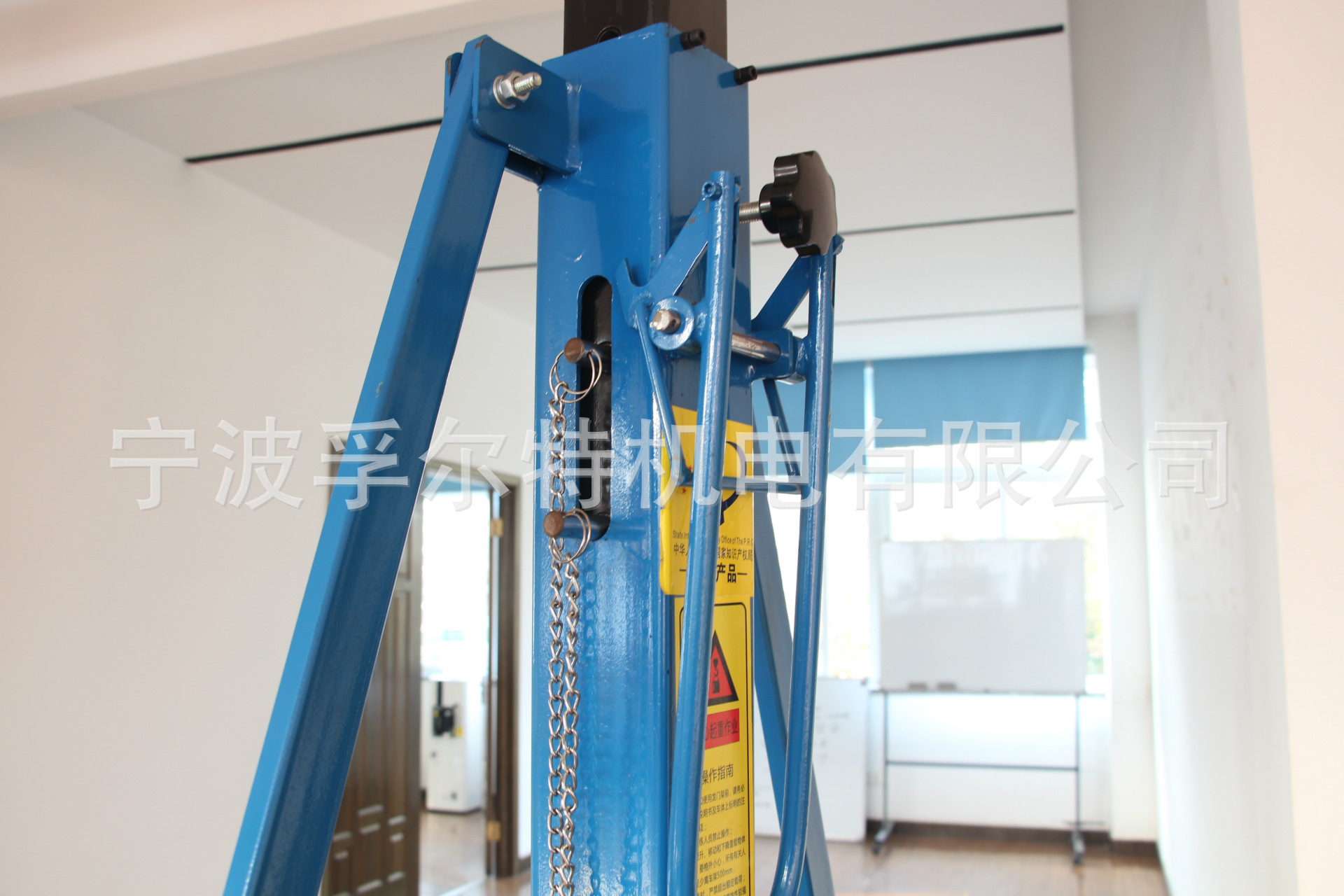 构造特性:钢架以方形钢管为主体;立柱的一端通过螺栓与上梁连接,上梁的两边均装有防坠设备。立柱的另一端通过螺栓与底梁连接,底梁的底部有带锁定部门的万向轮。