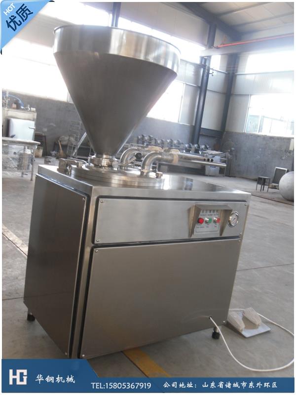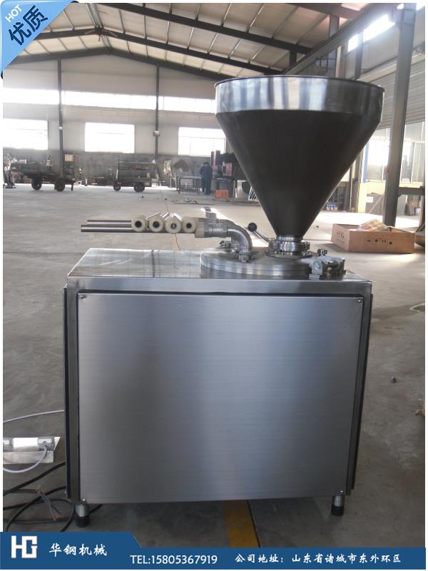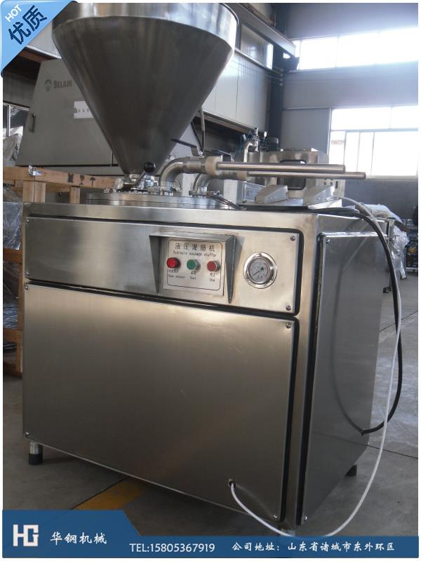 液压灌肠机是加工香肠产品的必需装置,可以生产大,中,小大小的肠制品。该机外形美观,工艺精湛,操作简便,使用安全准确。料斗,阀门,灌肠管机器的外包装均使用优质不锈钢制成,相符食品保健要求。
