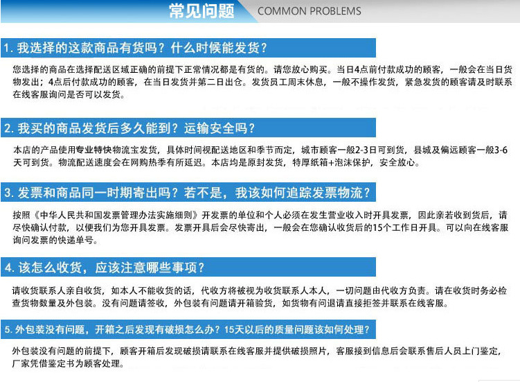 5.以上产品对整机免费保修一年,并提供24小时登门服务