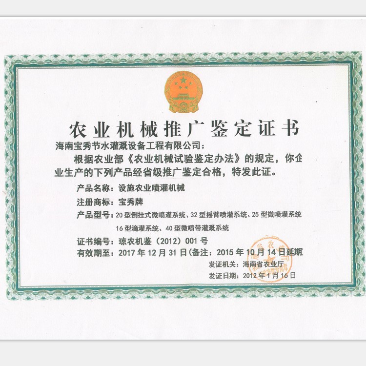 海南宝秀节水灌溉设备工程有限公司是PE管材,PVC管材,水肥一体化洒水器,荷花雾状洒水器,车身便利,园艺专用洒水器,景观洒水器,果树专用洒水器,施肥器,过滤器,滴灌管,滴灌带,滴灌箭,滴头,稳流器,旁路,旁路阀,水肥一体化三通,微管,柱塞等产品专业生产加工公司,保有完整科学的质量管理体系。海南宝秀节水灌溉设备工程有限公司的诚信,实力和产品质量取得业界的认可。欢迎各界朋友光临,指导和洽商业务。