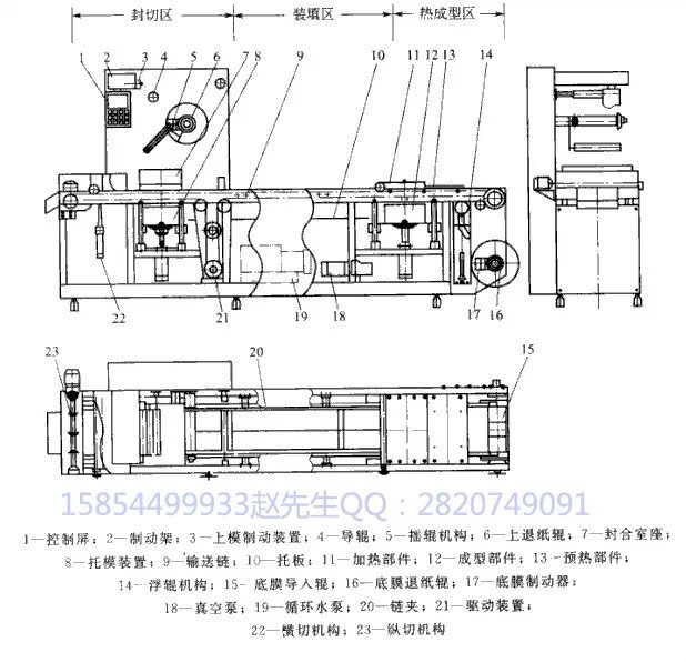 3.底膜预热区和热成型区。成型前需要加热底膜。为了提高生产率并实现快速成型,在热成型区之前设置了一个预热区,使底膜在进入热成型区之前具有一定的温度,从而缩短了热成型区的加热时间。薄膜,厚度和材料,成型温度也不同。热成型方法包括气压成型,真空成型,@nz成型等。