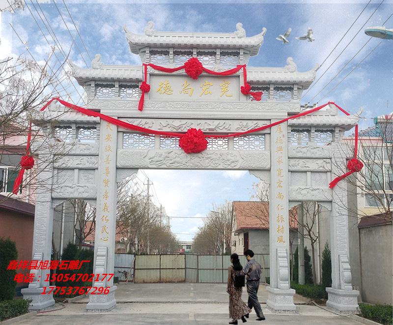 一张完整的乡村入口处牌楼图片,本文举荐了石牌坊制造厂家嘉祥旭源石雕厂。石牌坊的一些乡村入口处牌楼的经典图片,也可以称之为石牌楼,这是我国最具代表性的装饰建筑物。从乡村的入口处建起石牌坊不仅可以通过石牌坊展示奇特的乡村文化,而且可以加强乡村的总体形象。从石牌坊提供的单扇三门三楼的图片来看厂家嘉,制作乡村入口拱门的常见款式有单门石牌坊,石牌坊石牌坊等。其中,乡村入口拱门在人们中很受欢迎。下面请参看石材拱门制造商,精心引荐图片乡村的门拱门的视图。