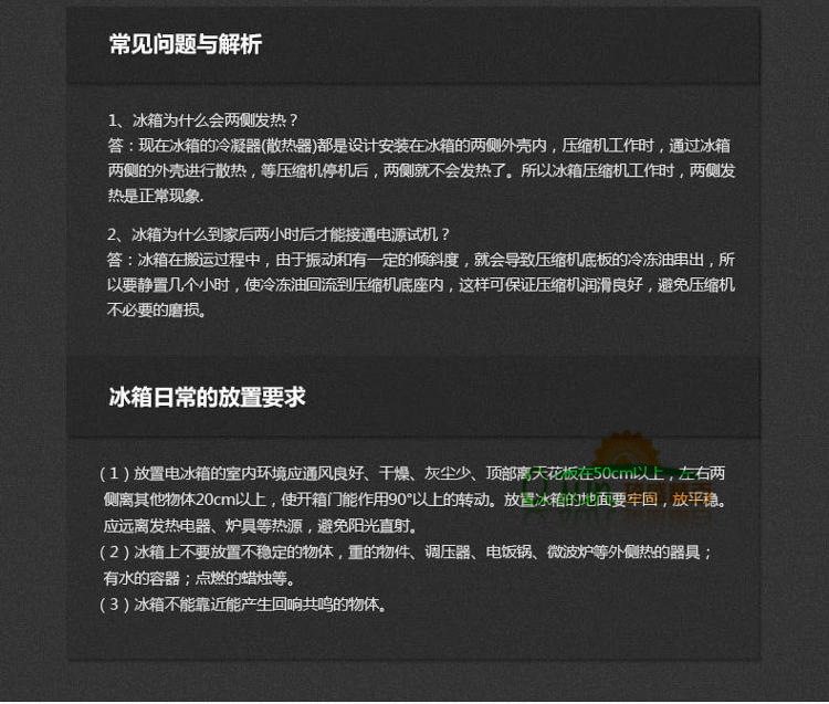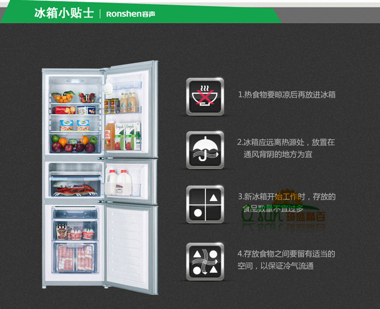 2.冰箱应放置在远离热源的地方,避免日光直射,通风不错并干燥。