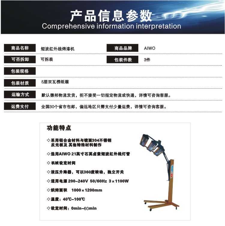 - 产品用途油漆固化,表面烘干处理