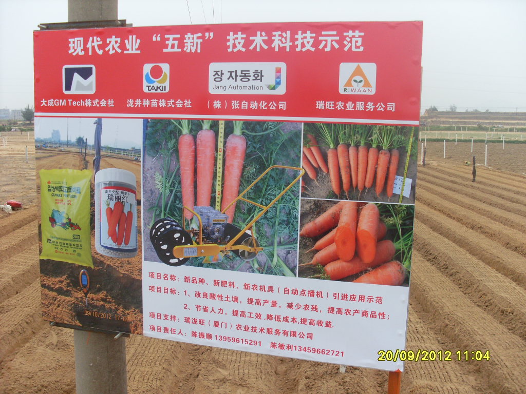 我们公司帮助销售播兰特人播种机,主要用以与日本泷井种苗株式会社泷井交配瑞丽红丸粒化萝卜种产生的下一代杂交技术合作。