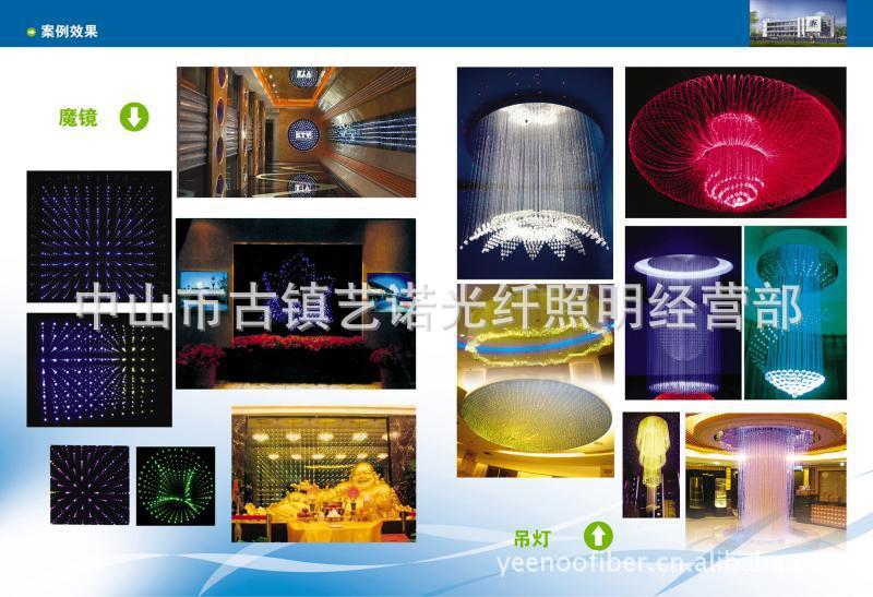 光纤灯使用光纤发光原理来集中大量的光斑。光点的颜色可以随意改变,具有不发热,不紫外线,安全节能的优点,光纤可以自由弯曲。���使用侧光勾勒轮廓,或使用尾灯强调亮度。它可以随便组合成各种漂亮的图案,具有个性化的情调内涵,即满天星斗的天空效果和轻柔的霓虹灯效果,还可以创立宏伟的瀑布效果,目前主要用于装饰舞台,酒吧,酒店,ktv等