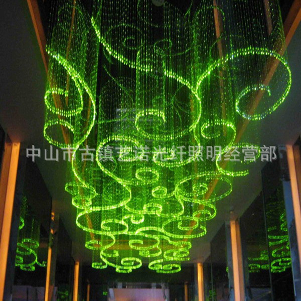 对于端部发射光纤,通常根据照明要求和装饰艺术效果选择尾灯,常见的尾灯包括吸顶灯,亭子灯,地下灯,枝形吊灯等。