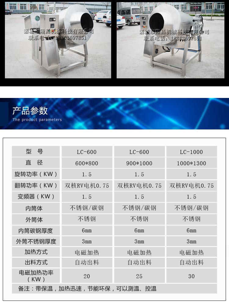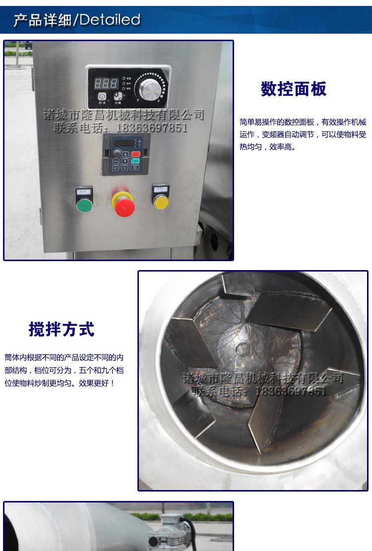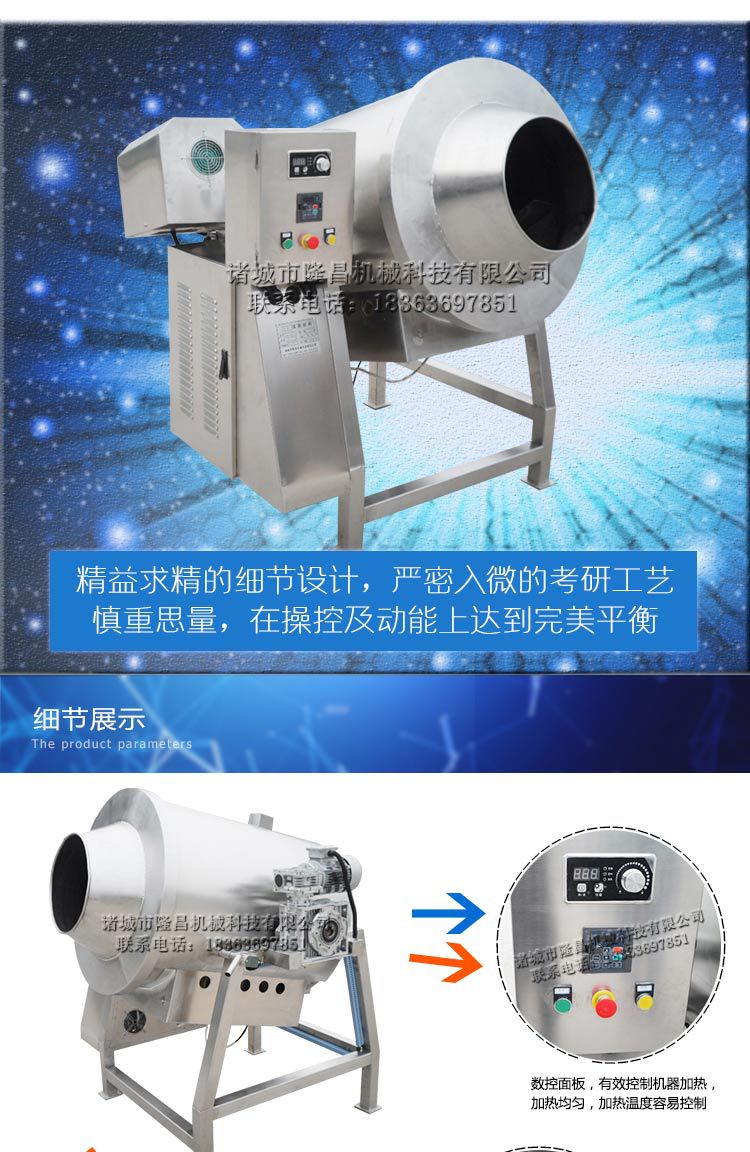 主要用以油炸高地大麦,芝麻,苏子,腰果,茶,肉松,谷物,粗粮,米粉和其他颗粒食品。它可以用以具各种机能的烹饪。