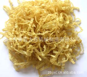 2.可以生产的产品:人造排(圆柱体表面上的小波纹),人造豆皮(圆柱体光滑且整洁的表面),豆筋(绳形),豆花,豆丝(牛排切碎或切碎的豆腐),素鸡翅(大,中,小),豆虾(类似于虾),豆肠,腐竹带等。