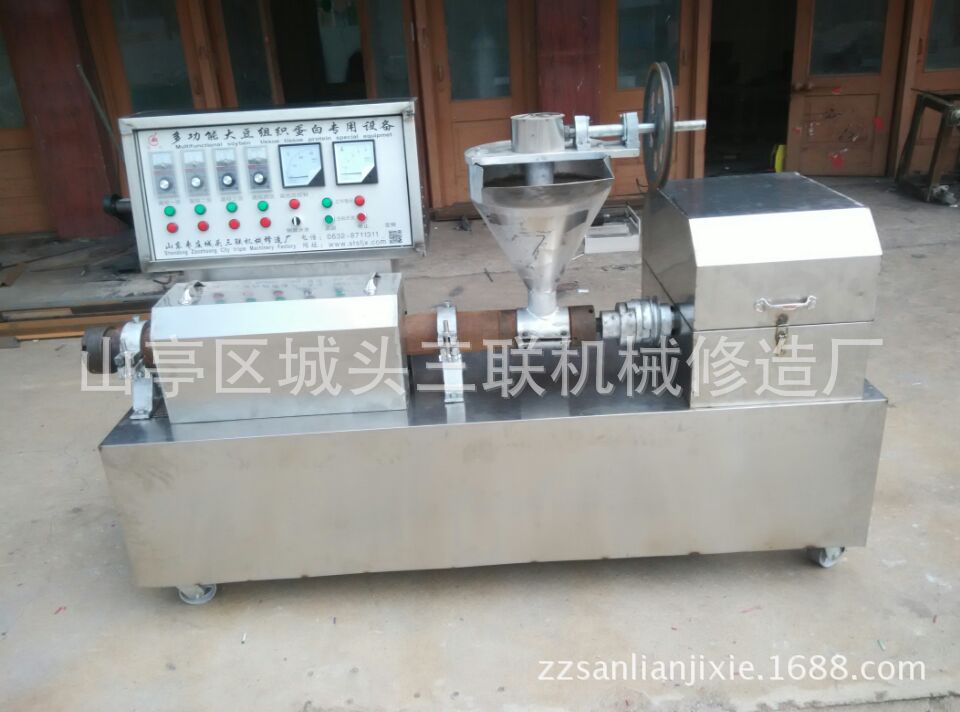 产品详情:该机器是一台多功能机器,可通过不同的模具管生产各种样式的食物,例如:蛋白肉机素牛排,素鸡翅,素海螺,素肉条,素鸡脯肉,素肉丁,@nz十多种产品,例如@,豆虾,豆肠,豆丝,豆花豆筋面皮,例如用户