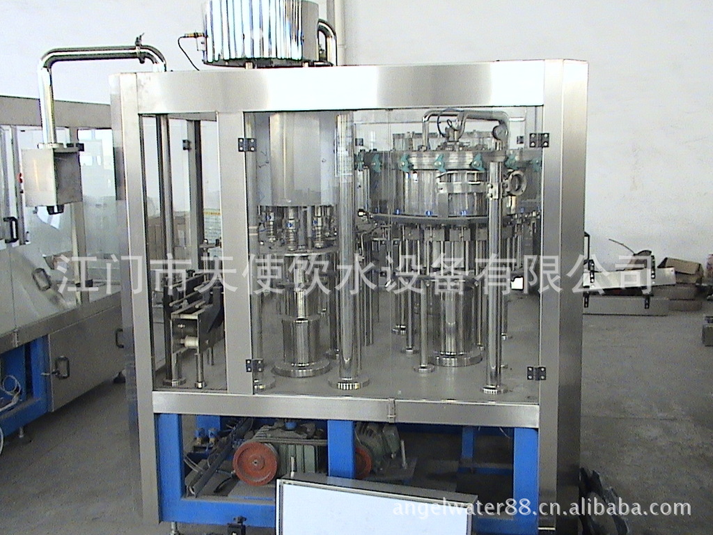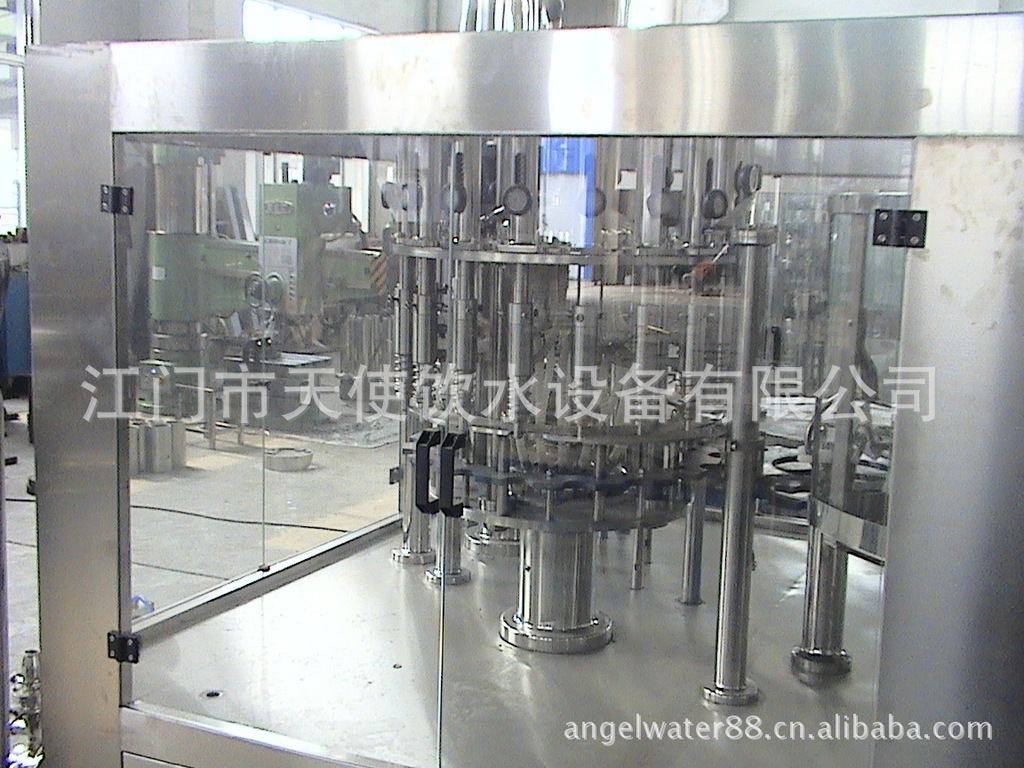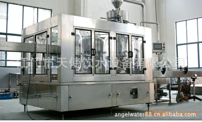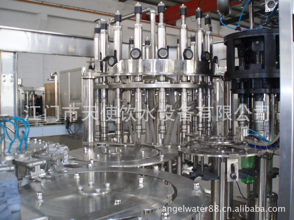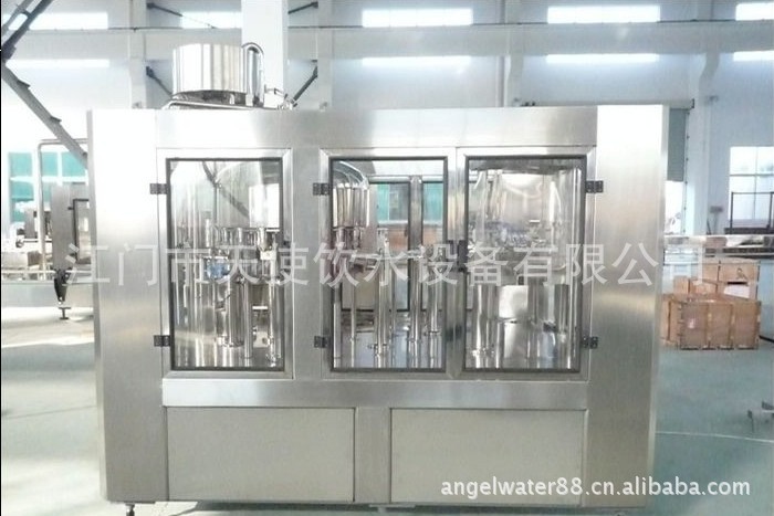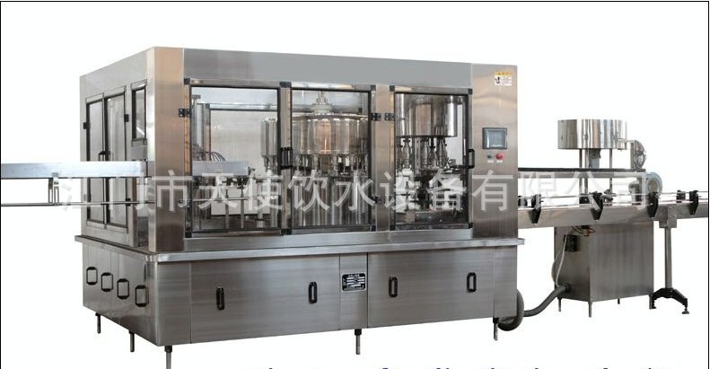 该机器主要用以饮料灌装操作,该机器将显影,灌装和旋盖三功并入为一体。整个过程是自动化的。适用于在聚酯瓶和塑料瓶中灌装果汁,矿泉水和纯净水,通过手柄的旋转实现各部分适用瓶形的调整,简易易行,灌装方法采用新型常压灌装的类别,使灌装速度更快,更平稳,因此与同标准的机器相比之下,本机的产量更高,收入更大。本机采用先进的OMRON可编程控制器(PLC)操纵机器的自动运行,并与主机变频器配合用到,使送瓶操作更为平稳精确。光电检测各构件的运行状况,操作简便,可装设密封方法具市场上通用的防盗盖和塑料盖,兼具普遍的应用范围,是饮料制造商的完美设备选择。