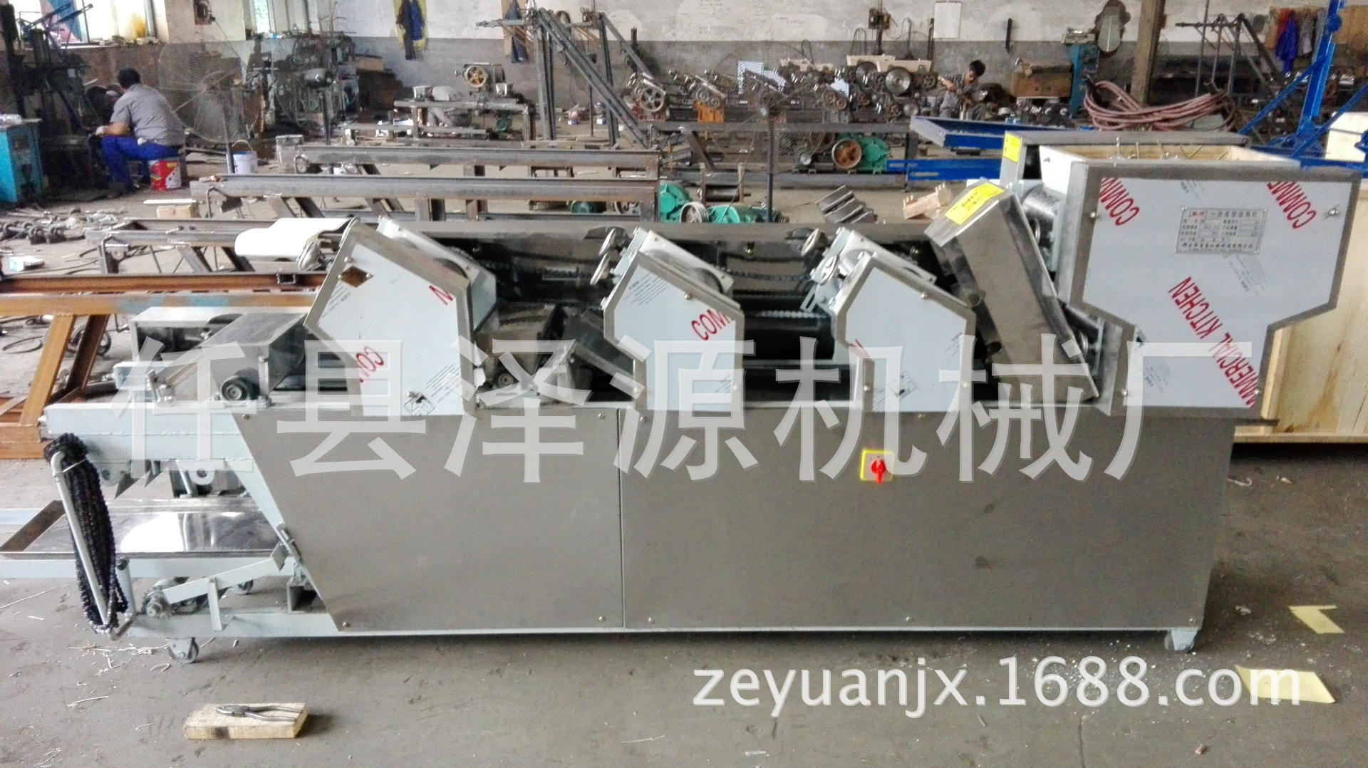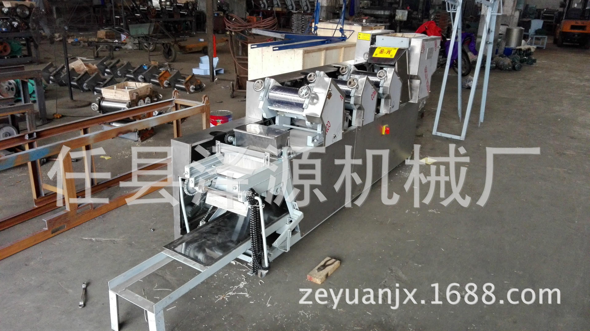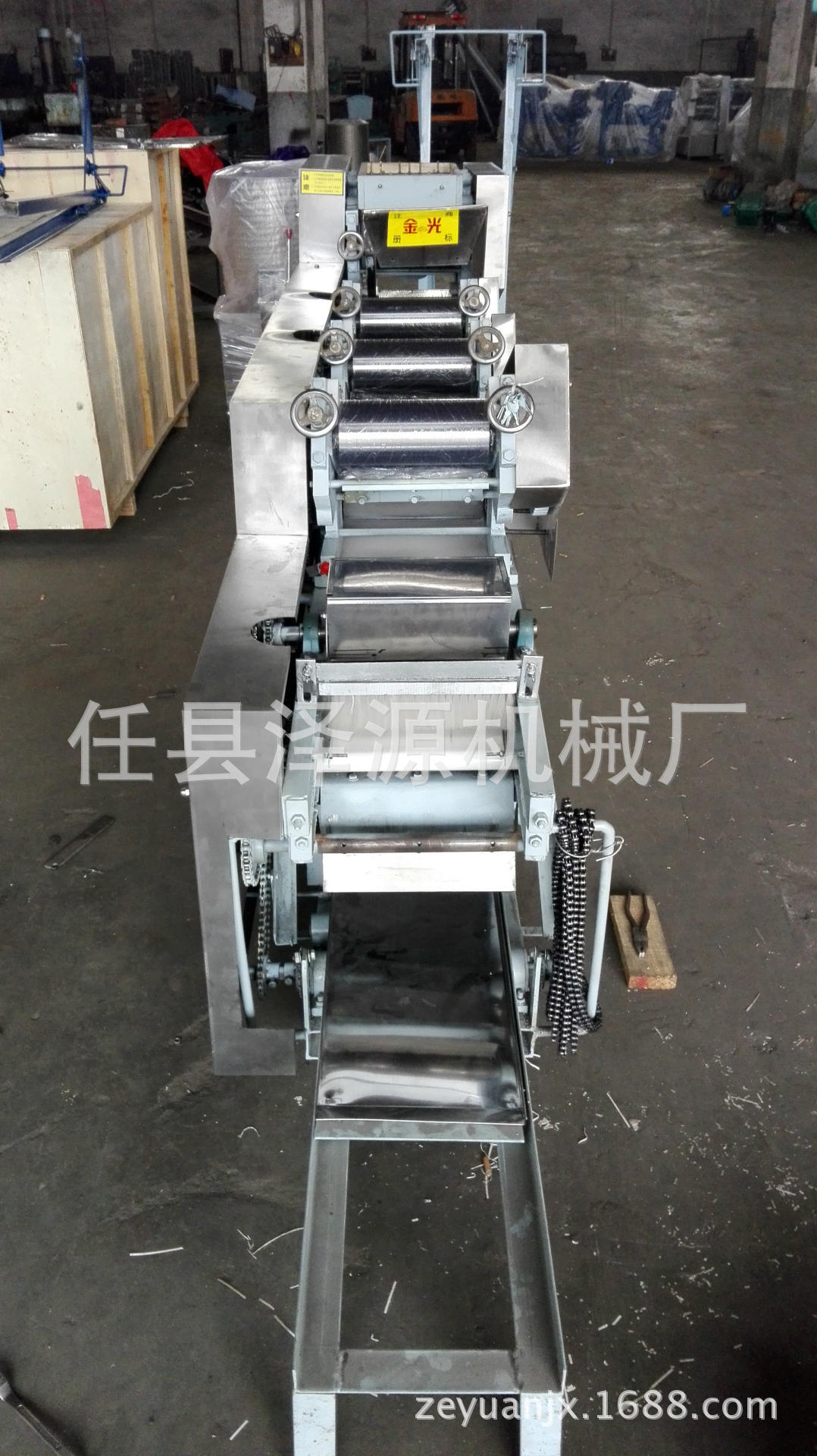 1.揉面:揉面是面条生产的第一道工序。将面粉放入面条机开始搅拌面条。
