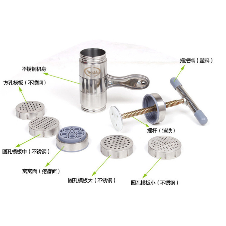 该面条机的95%由不锈钢制成(关键零件均为不锈钢),其余5%由塑料零件和不锈钢零件制成