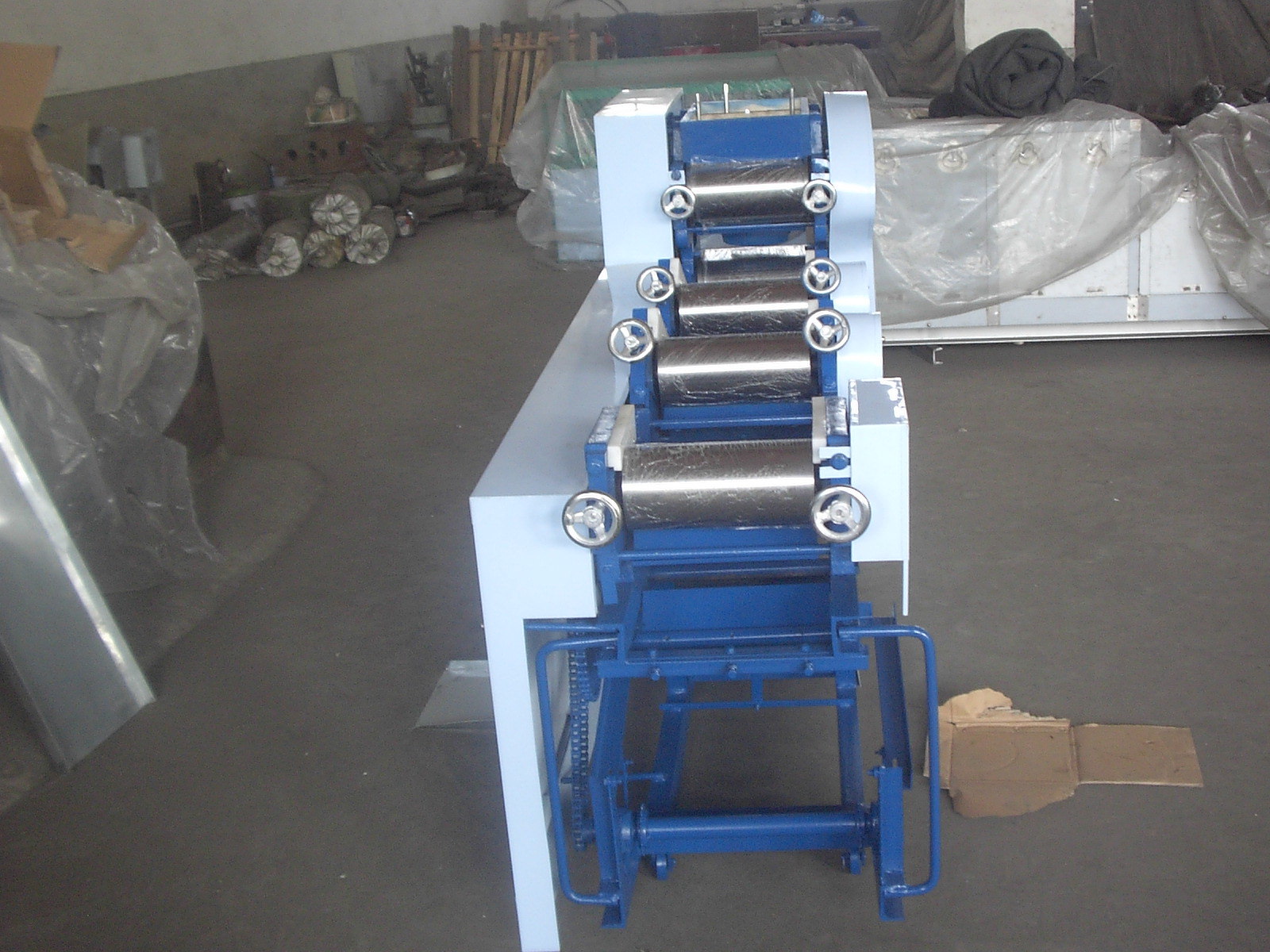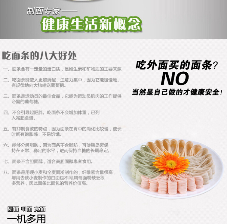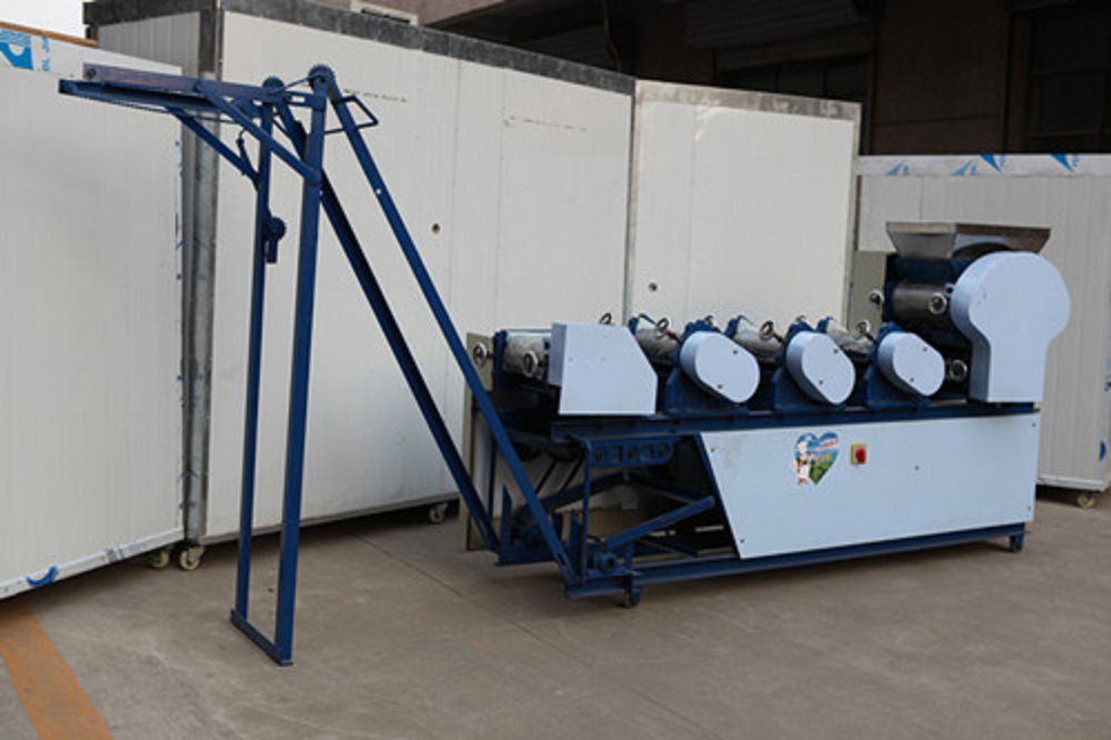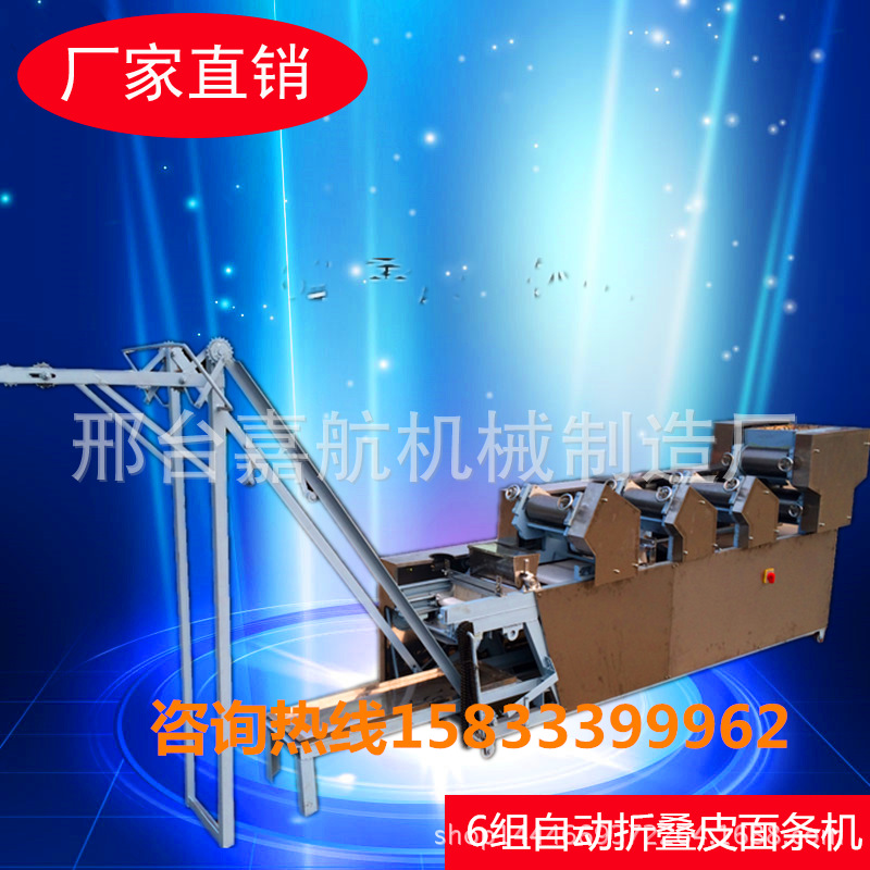 安装指南1,机器安装须要固定平坦,打开侧盖,在减速器中加30#油,接地线按地线标示2。检查运输过程中各部分的紧固件是不是松动;3。连通电源,测试正转和反转,在正常情形下,按下上部三角皮带,然后拧紧马达护罩4。检查工作部位的油孔是不是畅通无阻,并在加油后启动操作指南。1.捏合:捏合是面条生产的第一步。将面粉放入面条搅拌机中开始搅拌面条,按规定比重约25%加水,启动电源,将面条和水均匀搅拌成颗粒状(10分钟后最佳使用),即可用过的2。调整:用到手轮调整轧辊间隙。每组辊缝的参考数据如下:(330以上的机组除外)。在调节过程中,拧紧或松开手轮多少,有时不易一次调节,关键是找出实情,耐性掌握,如果不纯熟则终止机器调节并锁定正常后手轮3。操作:将混杂的面粉放入面条机中,按刀并固定刀板,然后将其打开。第三组专家组应手动指引到下一组(多个组等)。常见故障和故障排除