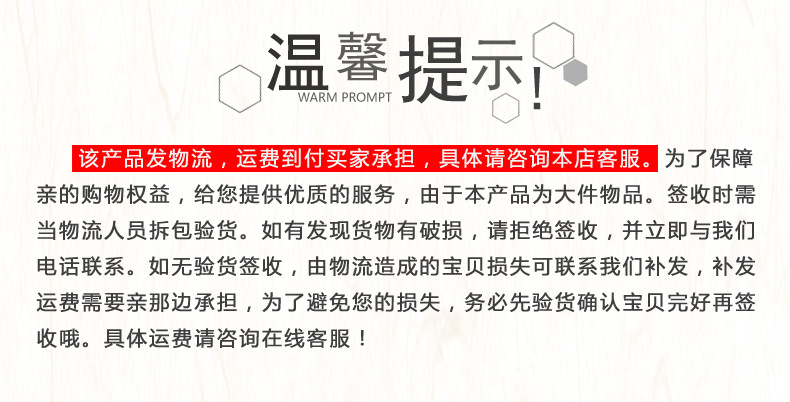 4.关于收货确认:收到货后,请务必在当天确认收货。如果延迟被恶意延迟,将被视为已舍弃售后服务。如果将来出现任何质量疑问,制造商将忽视它。