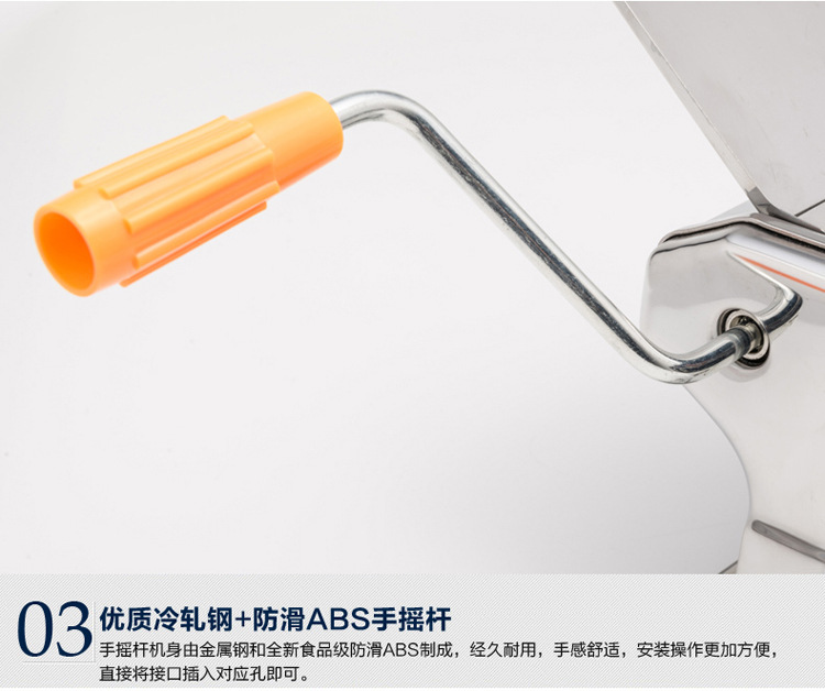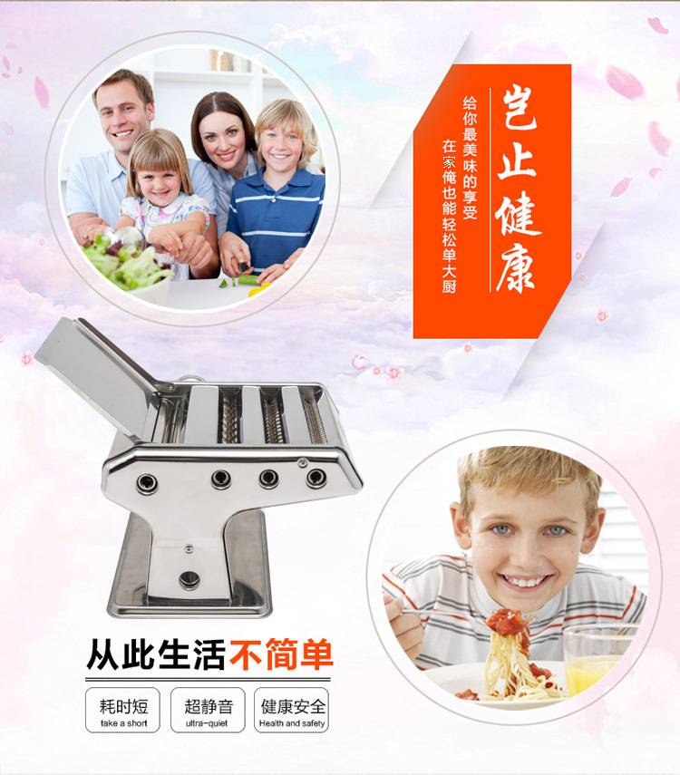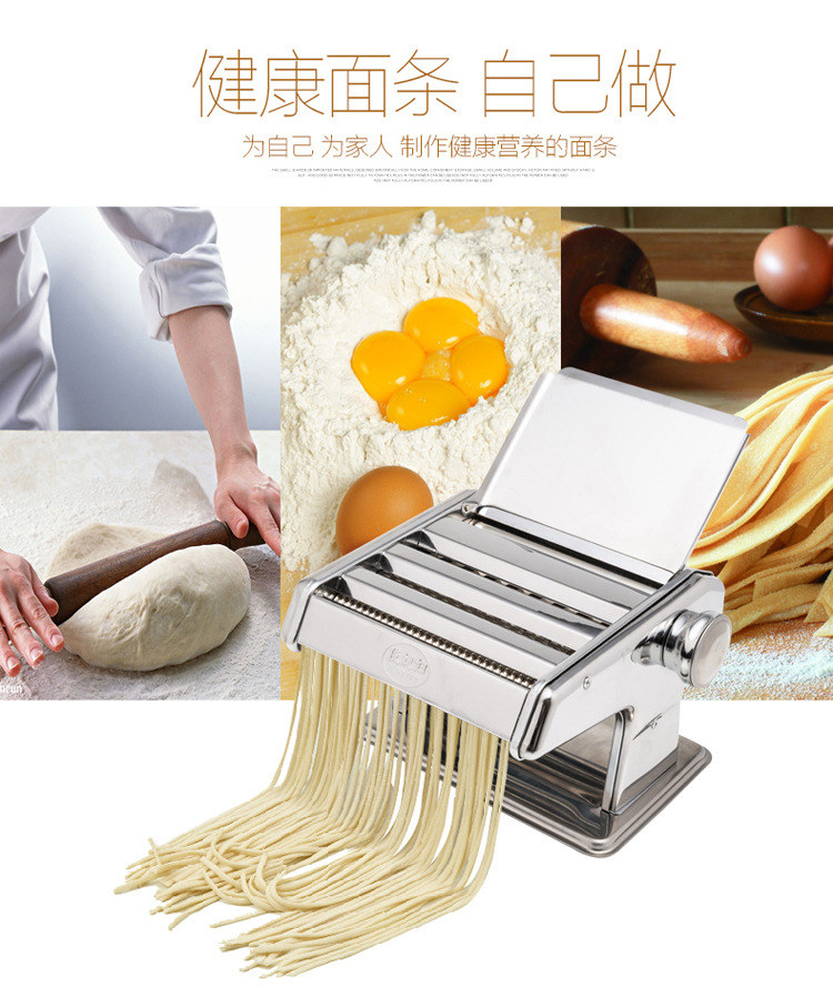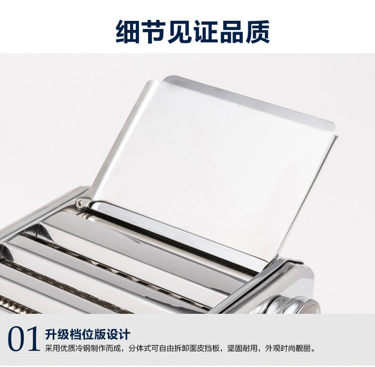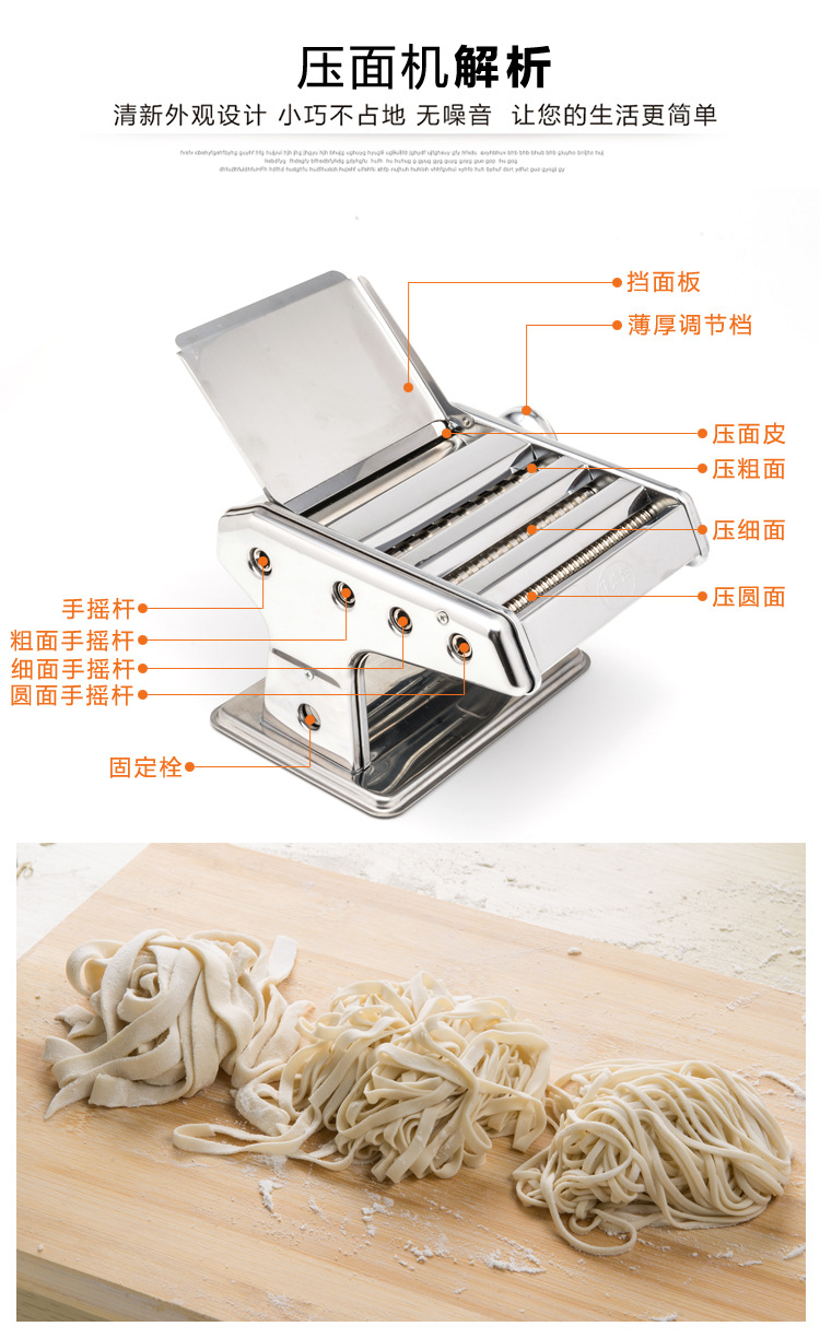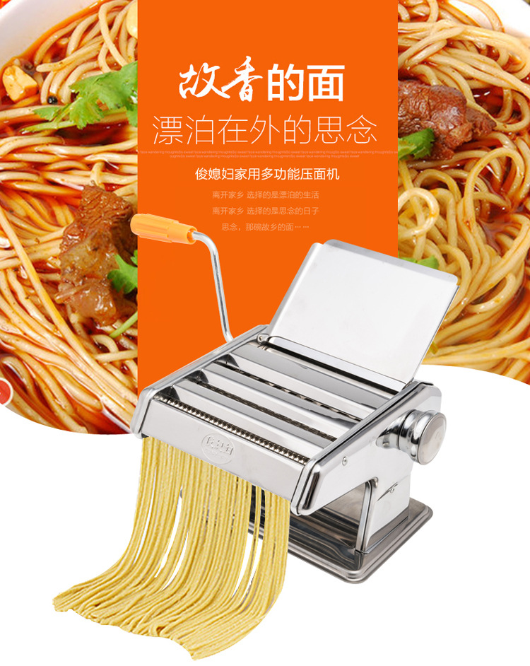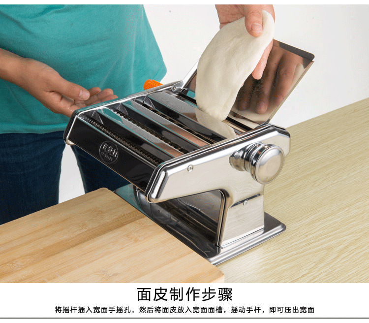 该产品不是纯不锈钢,但外部是不锈钢。中国并未纯不锈钢面条机。有关更多信息,请参考下面的产品材质详实介绍。手动压面机需用固定卡固定在侧面厚度为4cm或更小的桌子上,否则采用起来会很不便利产品介绍:材质:全金属优质镀铬,构造连贯,造型新颖,外形美观,清洁卫生,一机多用。
